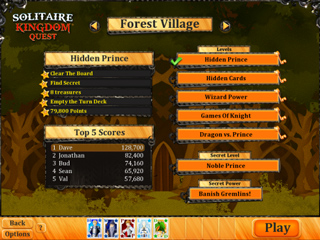 Solitaire Kingdom Quest expands on the hit Solitaire Kingdom Supreme game, and adds 60 levels featuring new powerups and new challenges. You are chosen by the King to join the Solitaire Heroes and head out on the Dragon"s quest. But wait, Evil Knight is not happy about how you are winning all the time and has got some of his own friends to help him defeat you.